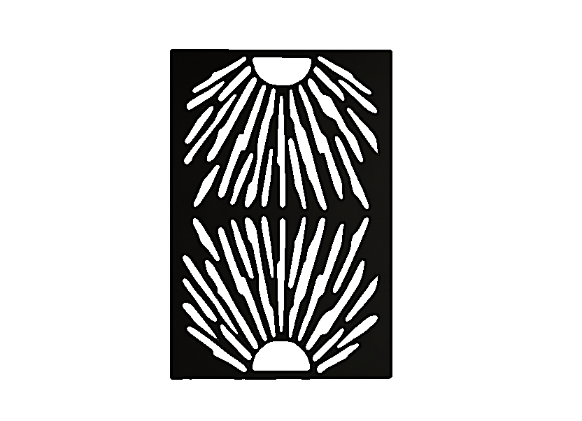 The Dusk to Dawn Panel captures the quiet drama of daybreak and nightfall through two mirrored suns and their rays - the radiating lines arranged in perfect balance.