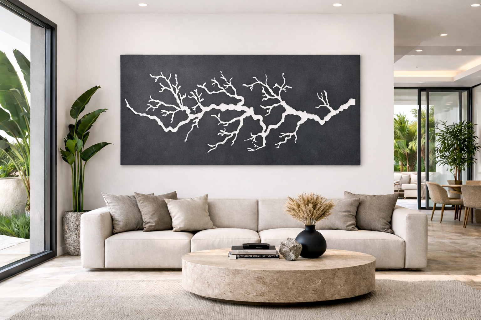 The Rami Panel captures the intricate poetry of branching forms—those twisting, reaching, ever-dividing limbs found in nature’s most expressive trees. Its design traces the way branches split, stretch, and meander, creating a network of lines that feels both rugged and refined.